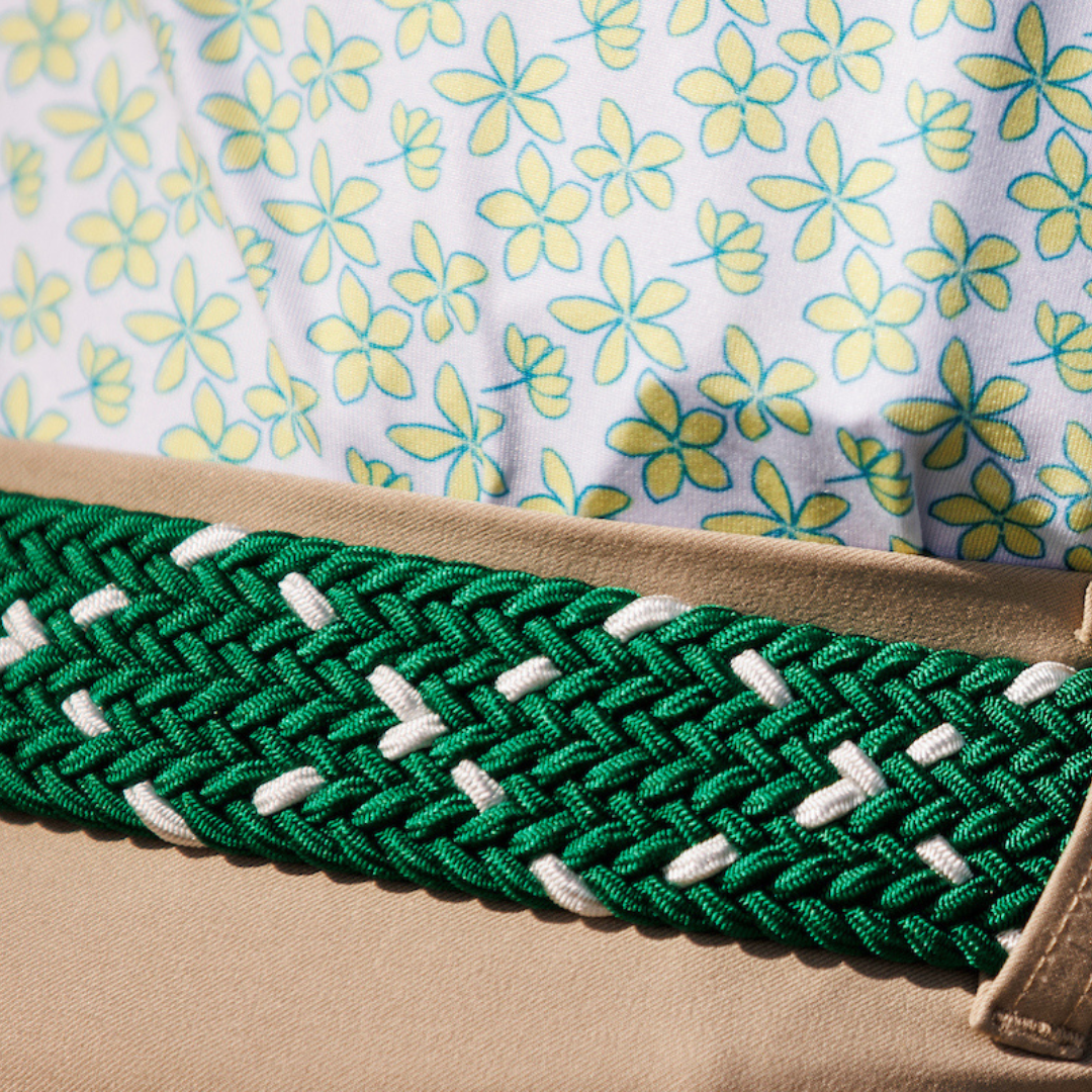 Complete your perfect outfit with our Brother Belts: The James. Made with braided polyester and leather accents, The James adds style and comfort with its flex fit design and 1.2" width. Elevate your game and style with The James by your side.